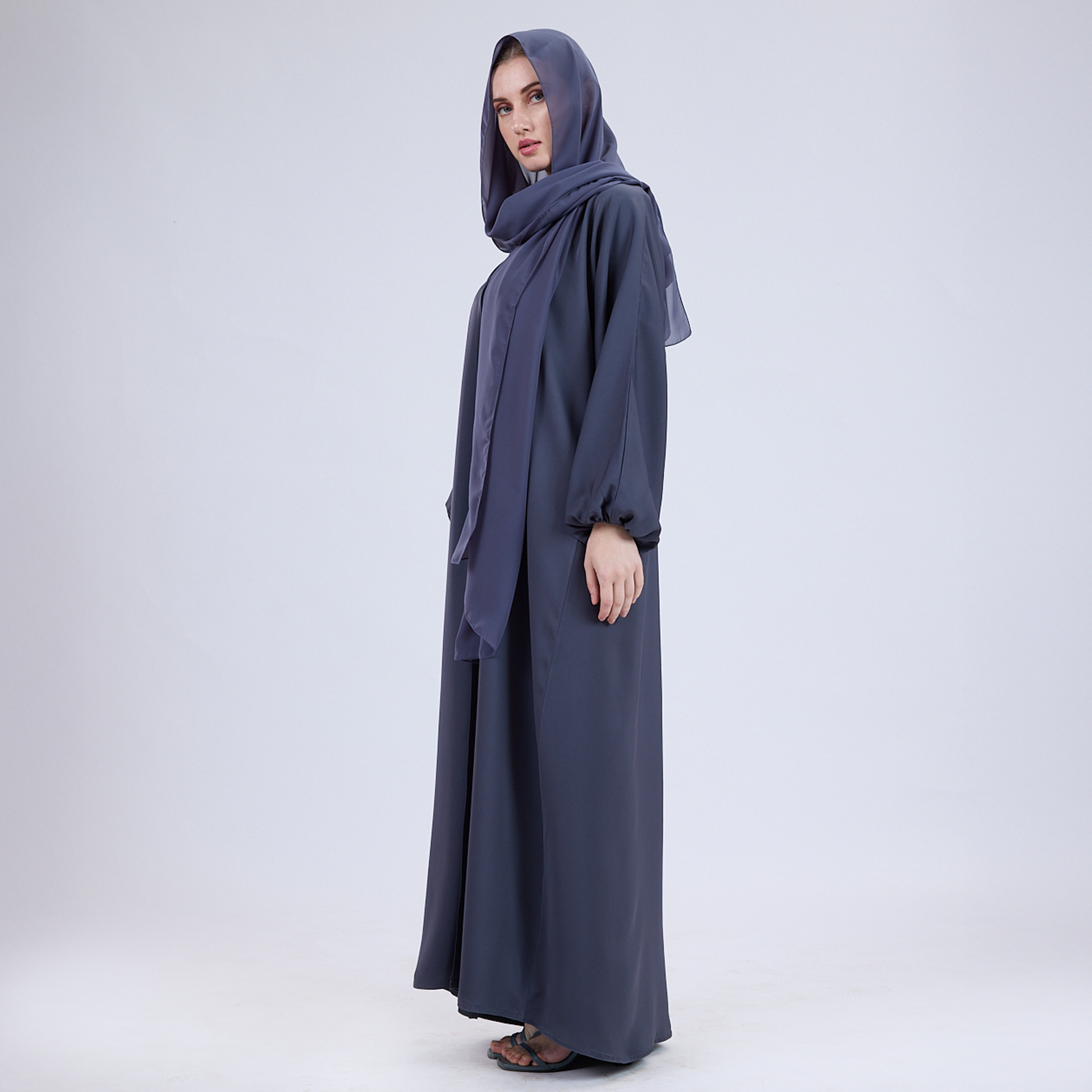 Nida Open Abaya with Elastic Sleeves