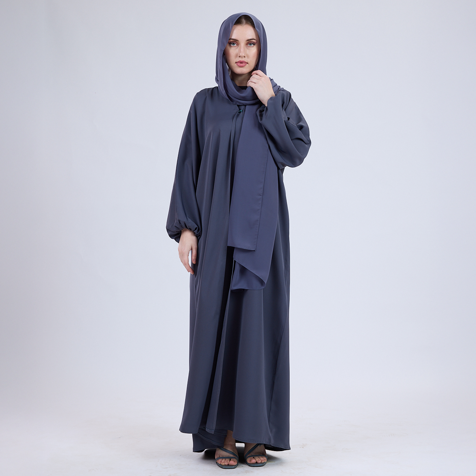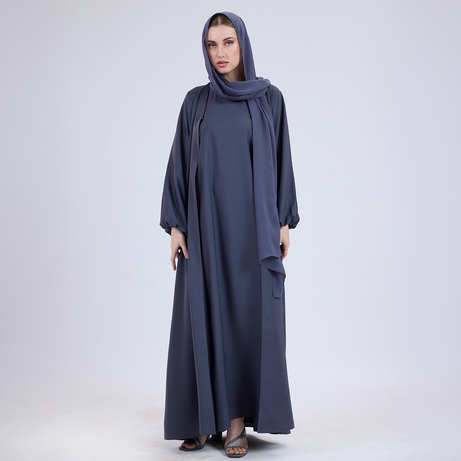 Whether you're dressing for work, travel, or an evening event, this Nida open abaya delivers timeless elegance and all-day comfort.